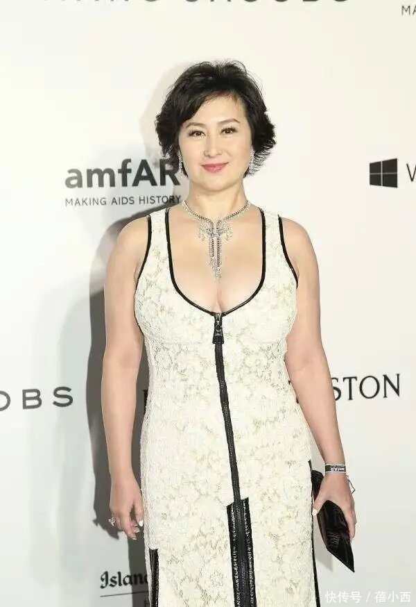 62年的何超琼身材真丰腴,穿白色低胸连衣裙凹凸有致,越老越迷人